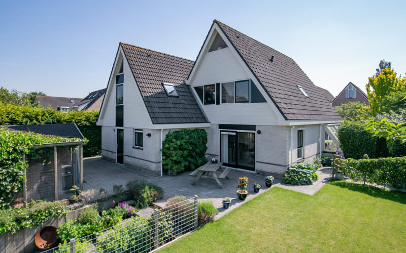 De woning is zeer verzorgd en is origineel 1994 gebouwd in de huidige bouwvorm dus origineel twee zadeldaken en geïntegreerde serre op de begane grond. Rondom de woning is de tuin fraai aangelegd en heeft meerdere terrassen waaronder een verlaagd terras welke grenst aan sierwater. Achter de woning bevindt zich tenslotte nog een ruime houten berging (ca.15 m2).