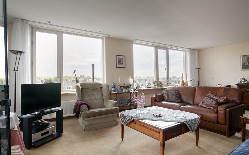 Een royaal, zeer licht PENTHOUSE – bouwjaar 1997 – met royaal zonnig terras en prachtig uitzicht over het vaarwater en de oude binnenstad.