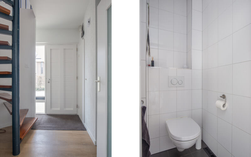De tweede verdieping betreft een volwaardige leefruimte en heeft naast de overloop een tweetal goed bemeten slaapkamers met voldoende bergruimte achter de knieschotten.