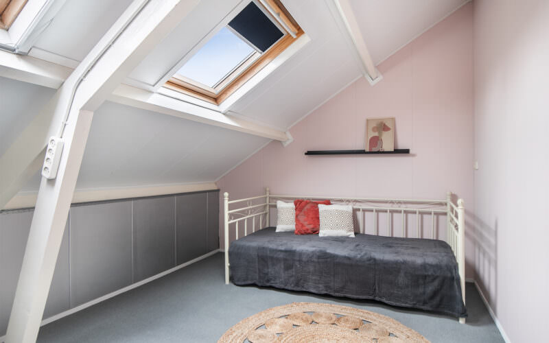 De tweede verdieping betreft een volwaardige verdieping en heeft naast de overloop met wasmachine aansluiting een grote vierde slaapkamer met twee moderne velux dakramen. De derde verdieping betreft een vliering/berging.