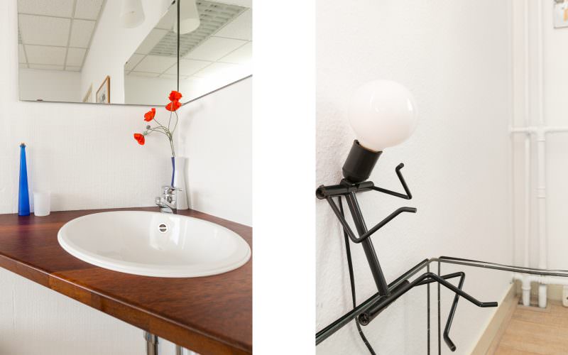 De eerste verdieping heeft naast een separate toiletinrichting, een viertal mooi bemeten slaapkamers waarvan de ouderslaapkamer een eigen badkamer heeft met douche en dubbele vaste wastafel. De tweede – algemene – badkamer heeft een dubbele vaste wastafel, douche en ligbad.