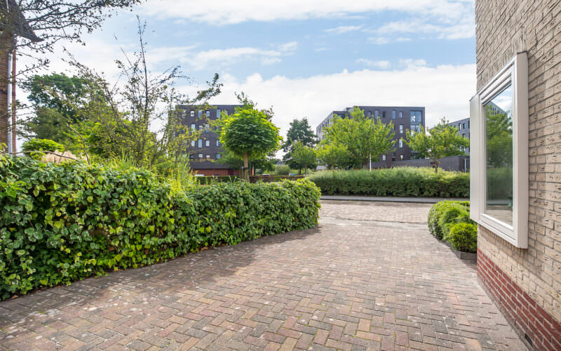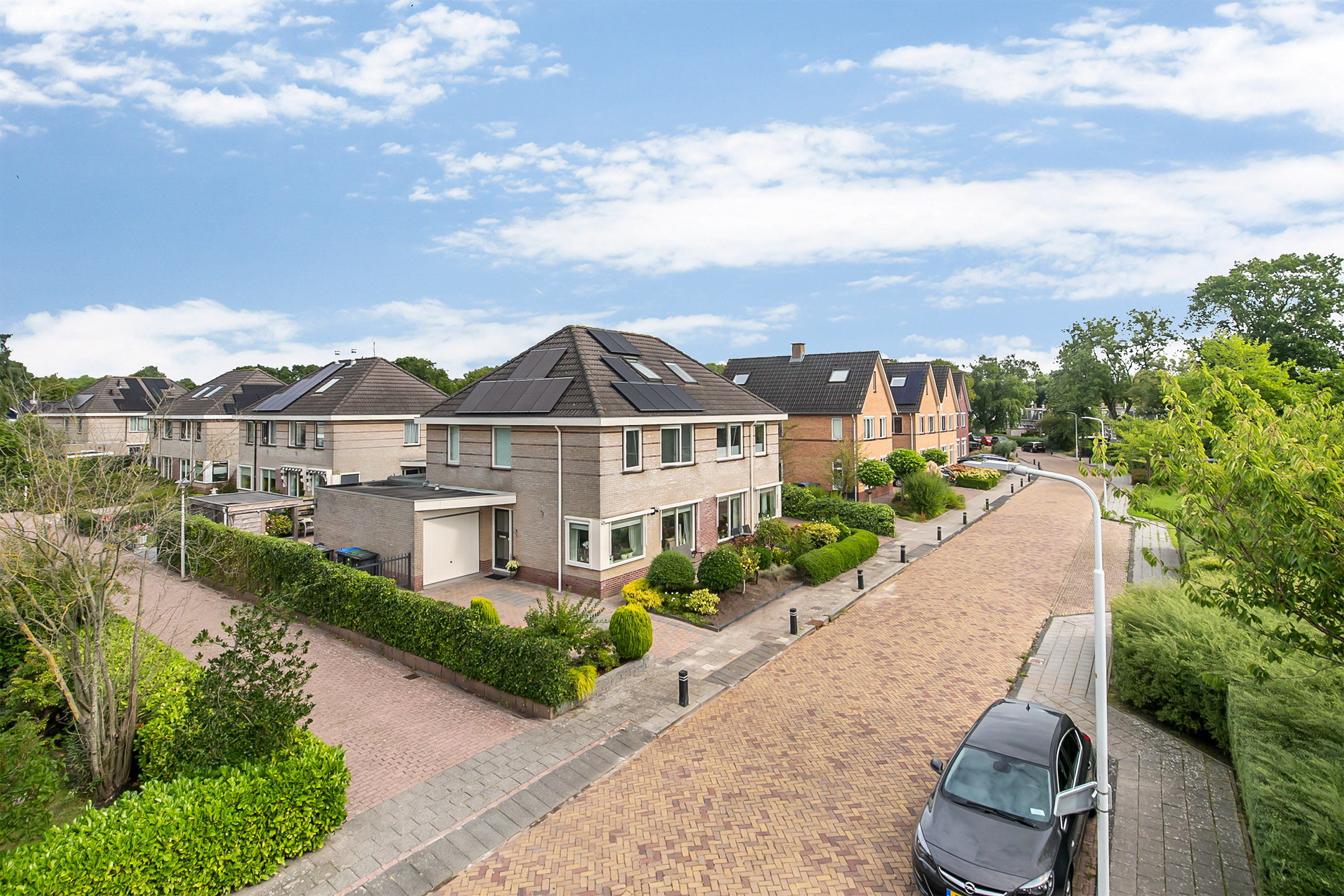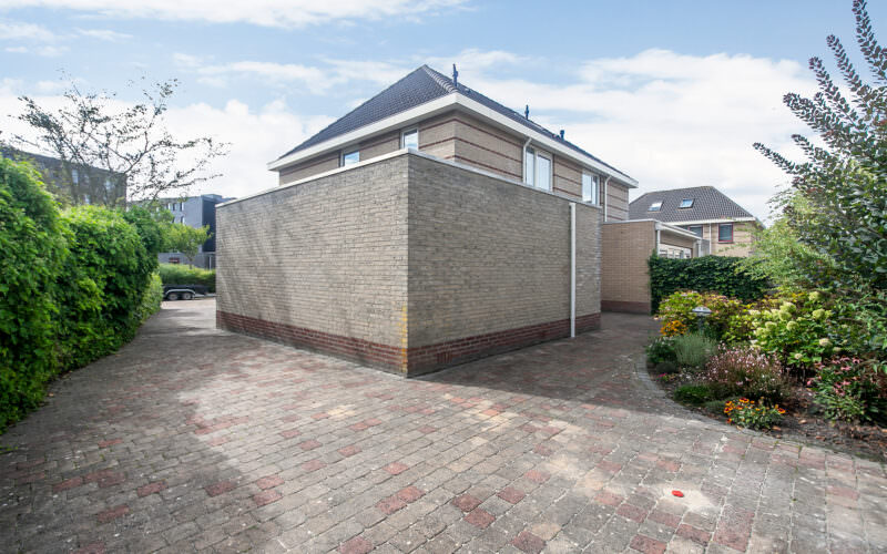 Overdekte entree, ruime hal met uitgebreide elektrakast, wandcloset met fonteintje, trapopgang, gezellige-lichte L-vormige woonkamer met hoekerker en schuifpui naar terras en tuin, deels open keukenruimte met keurige L-vormige keukenopstelling welke is voorzien van diverse inbouwapparatuur, doorloop naar bijkeuken met c.v.-verwarming/witgoed aansluitingen en doorloop naar…extra brede garage (3.9m) welke origineel bij de bouw als meerwerk is uitgevoerd.