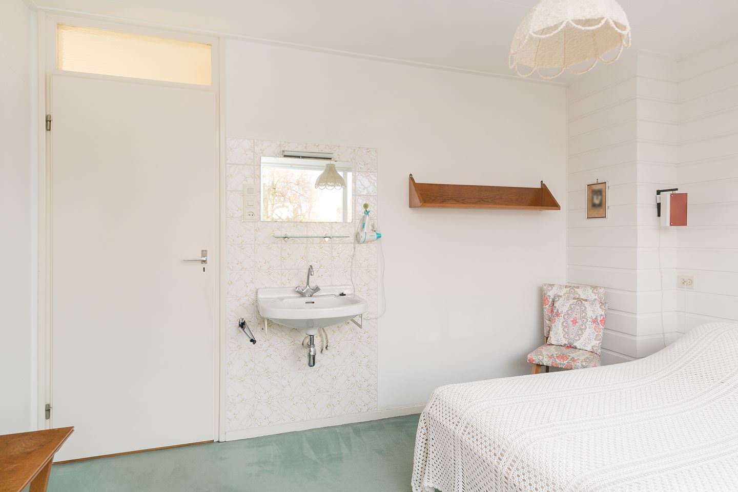 De tweede verdieping betreft een volwaardige verdieping en heeft naast de royale overloop, een grote vijfde slaapkamer met zijraam en berging achter de knieschotten.