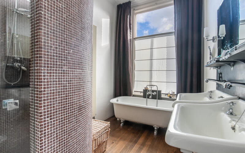 De badkamerruimte op deze verdieping is een aantal jaren terug gemoderniseerd en heeft naast een dubbele vaste wastafel, een ligbad en douche.