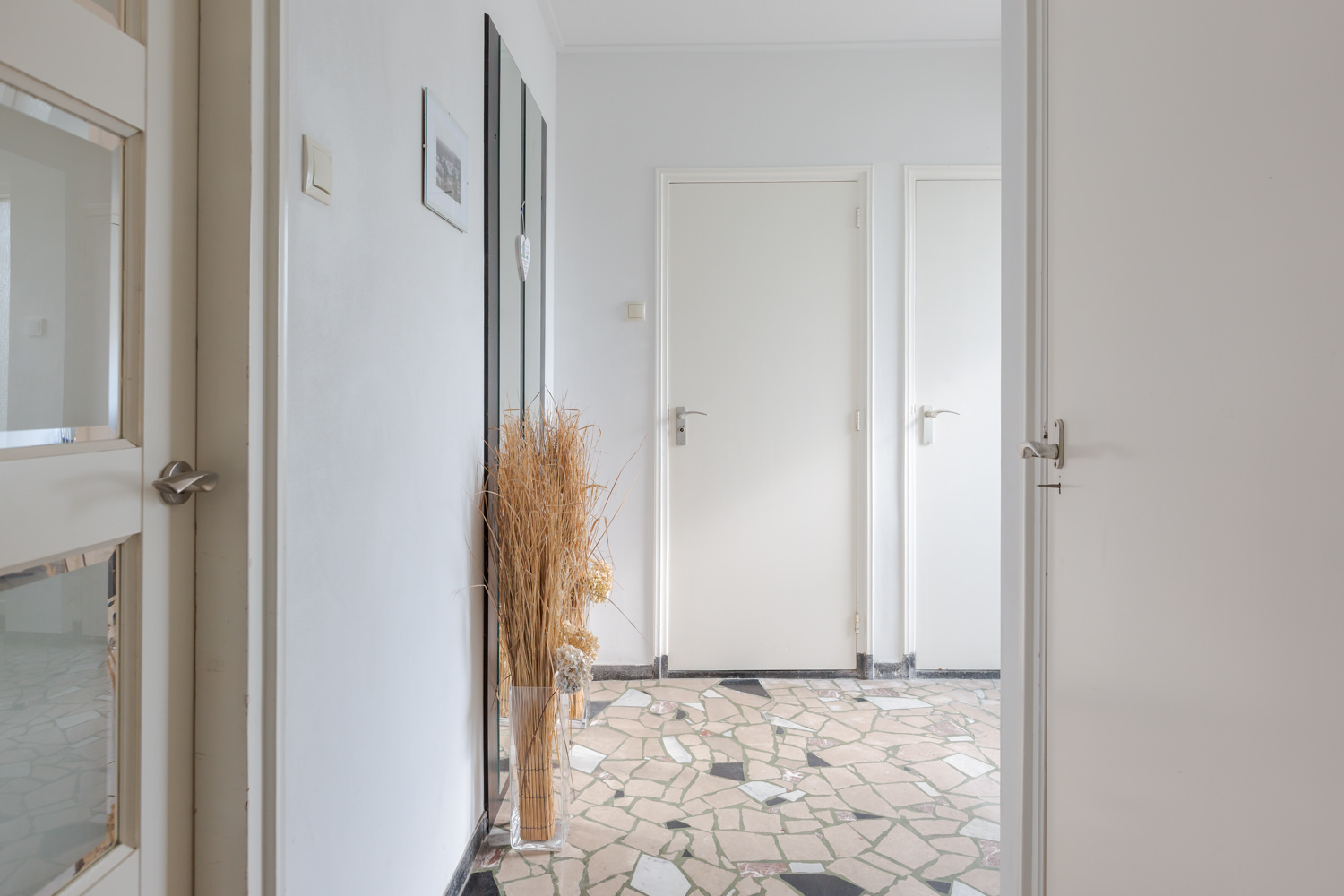 Uitgebouwde hal/entree met natuurstenen vloer, toilet met fonteintje, uitgebreide elektrakast, keldertje met raam, trapopgang en doorloop naar gezellige-ruime woonkamer met stoere plankenvloer, aansluiting voor een houtkachel en tuindeuren naar terras en tuin, deels open keukenruimte voorzien van een nette-uitgebreide keukenopstelling voorzien van diverse inbouwapparatuur, grote bijkeuken, badkamer (1) met douche en badkamermeubel, grote ouderslaapkamer/praktijkruimte/kantoorruimte (uitbouw ook in spouw)
