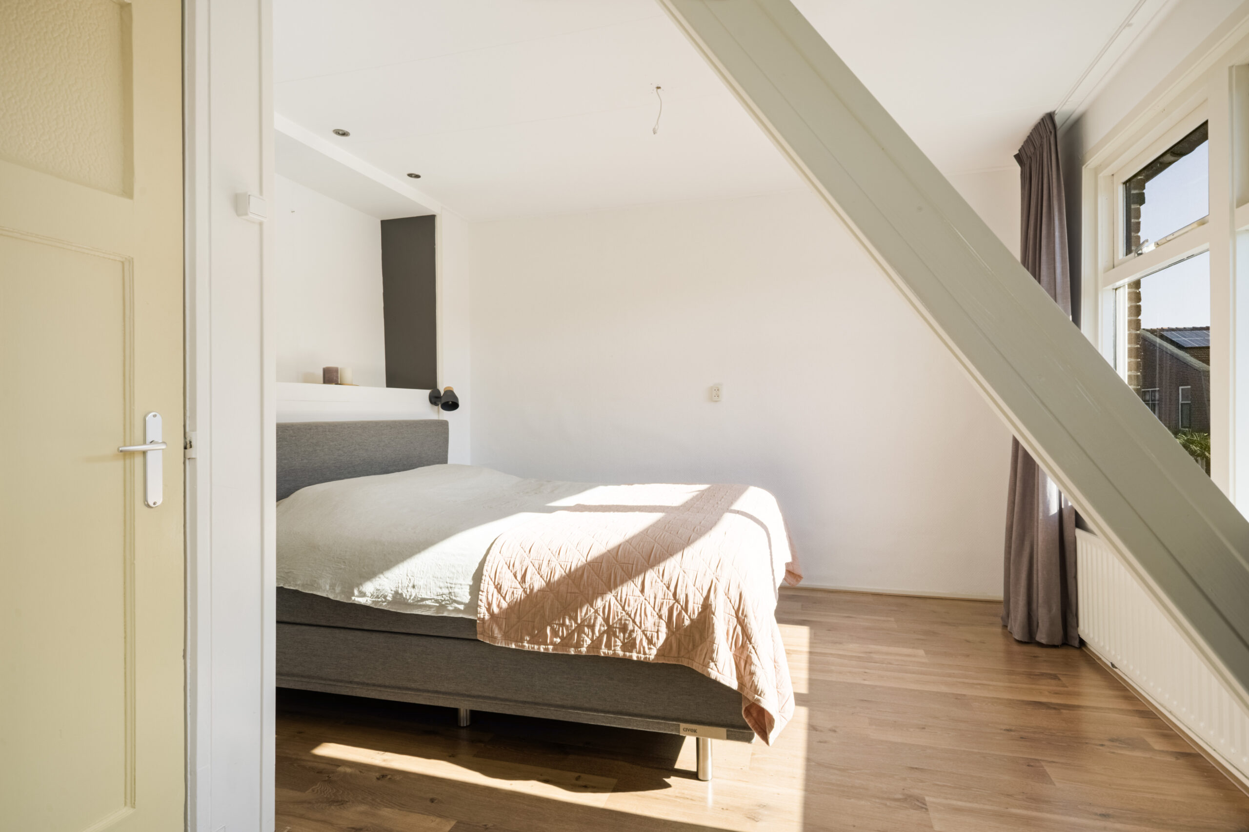 De tweede verdieping betreft een grote vliering.