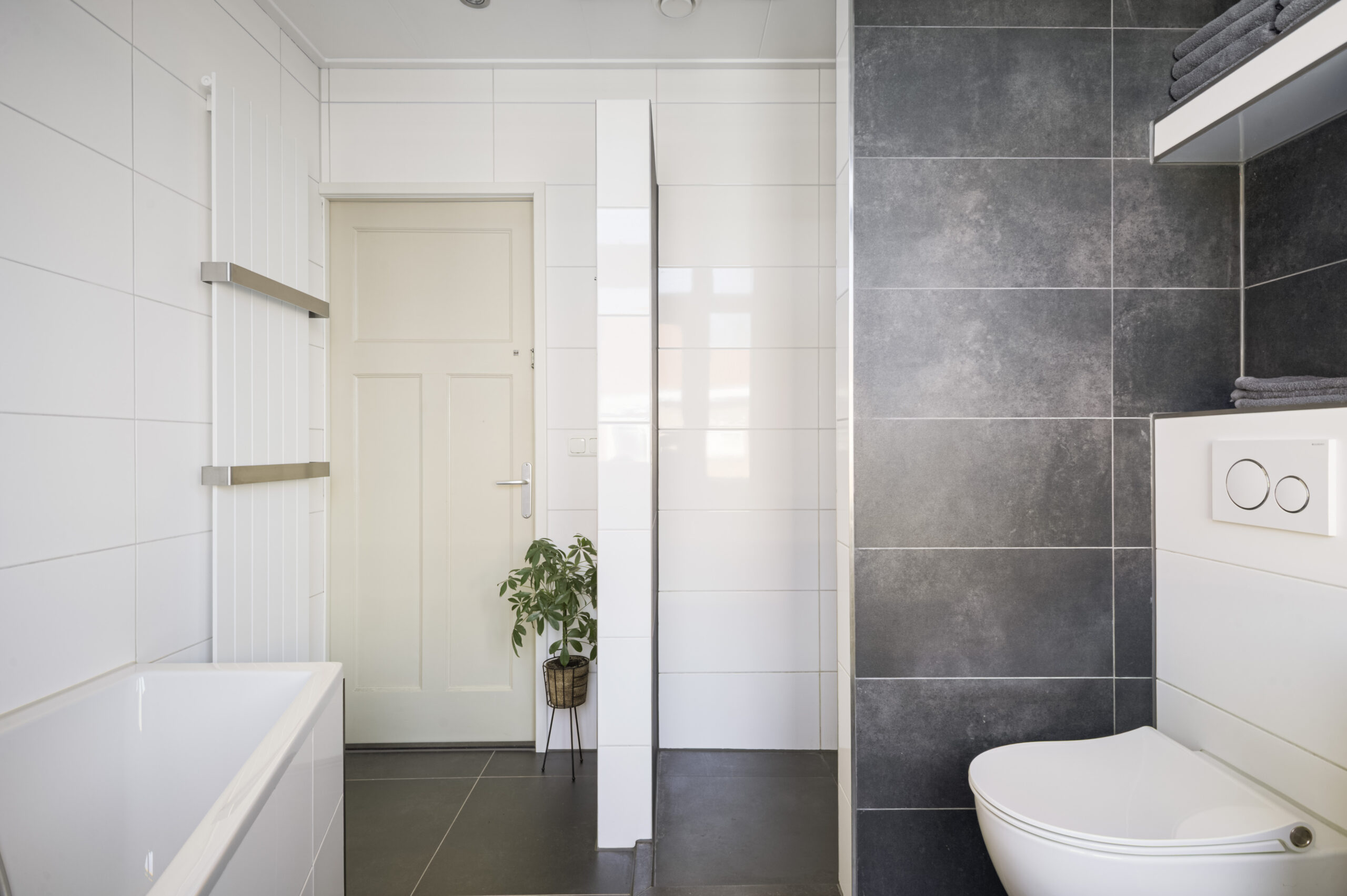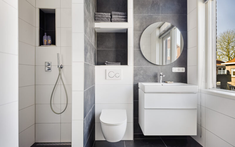 De eerste verdieping is recht opgetrokken en is op dit ogenblik ingericht met twee slaapkamers v.v. vaste kasten met optie voor een ruime derde slaapkamer. De badkamerruimte op deze verdieping is modern afgewerkt en voorzien van een ligbad, douche, tweede toilet, badkamermeubel en een deur naar het plat.